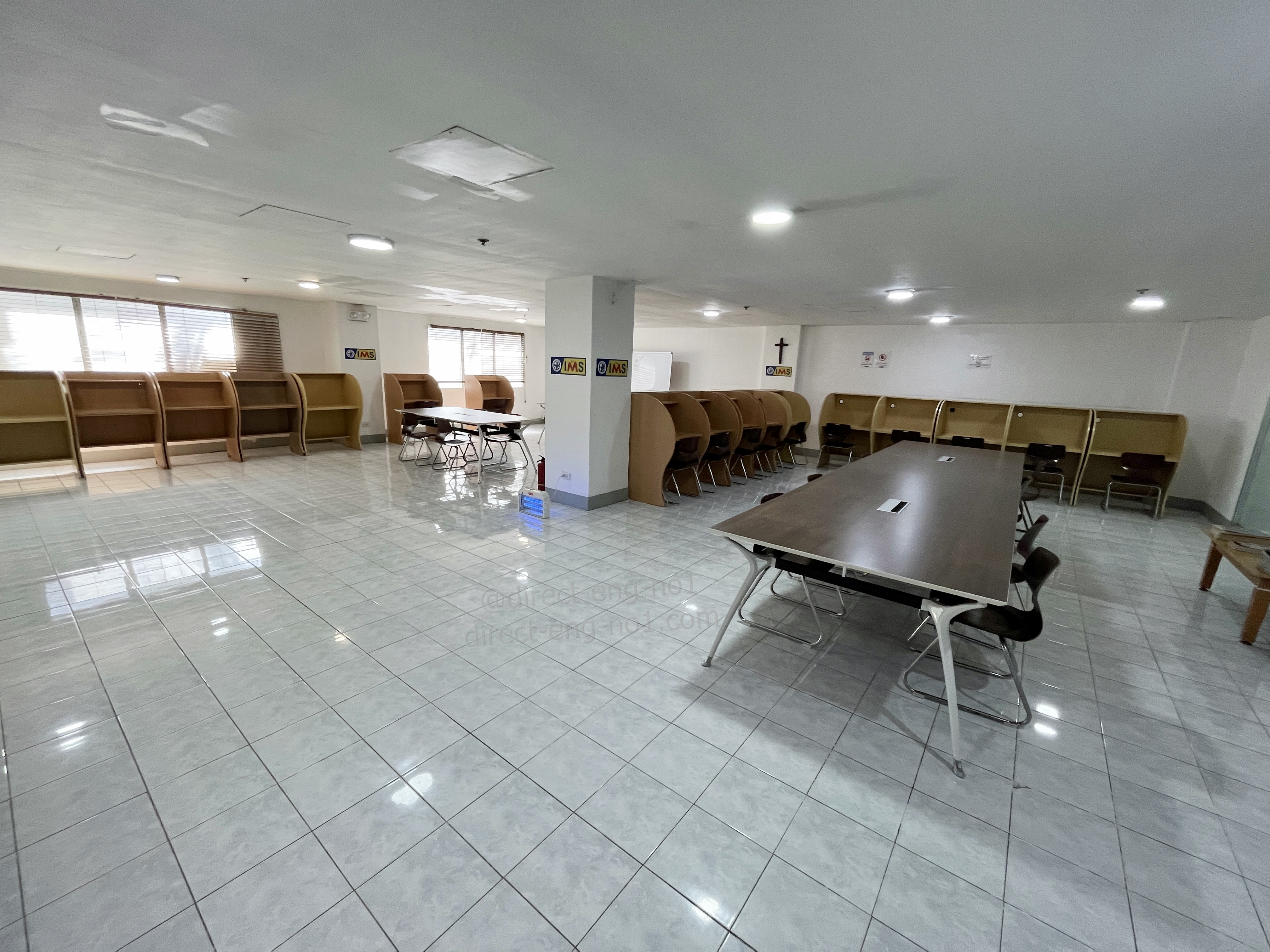 독서실용 책상과 개방 책상을 둔 자습실입니다.