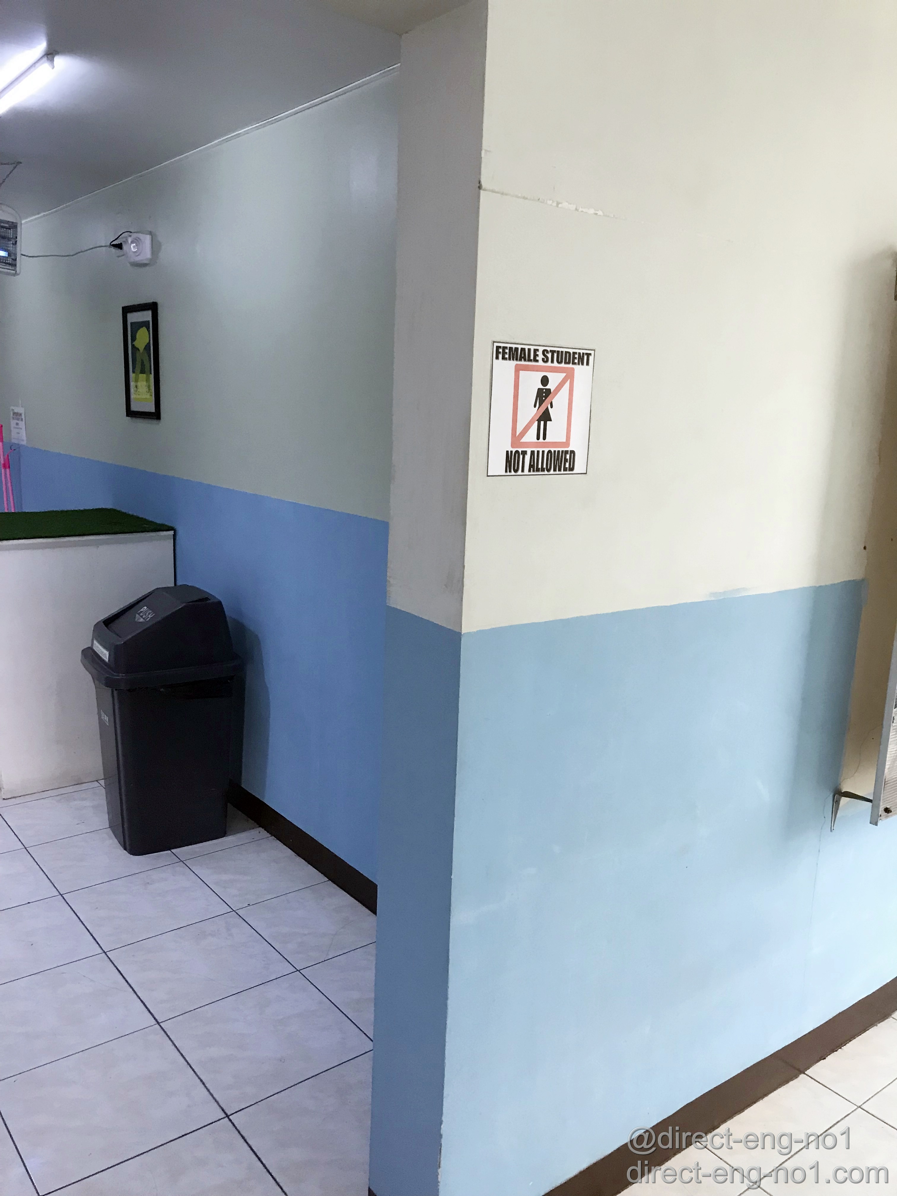 바닥과 벽면에 출입금지 표시가 붙어있습니다. 또한 벽을 파란색으로 칠해서 안내문이 아니더라도 한눈에 구별이 되도록 했습니다.
