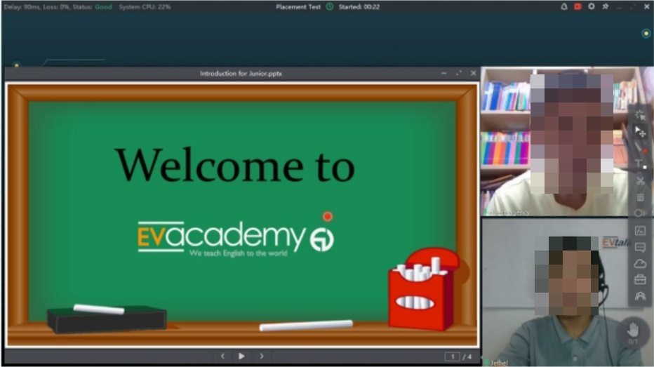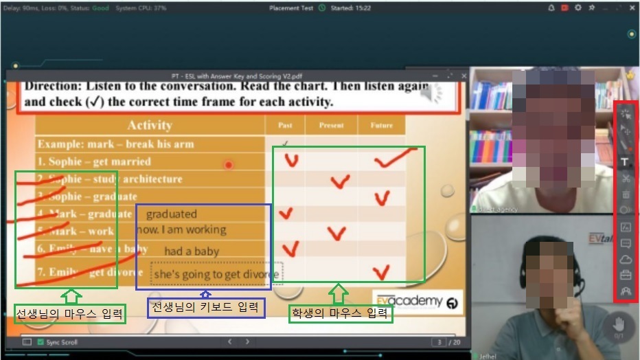 EV talk 첫 수업은 레벨테스트입니다. 학생의 수준을 알아야 수업 방향을 정할 수 있기 때문입니다.