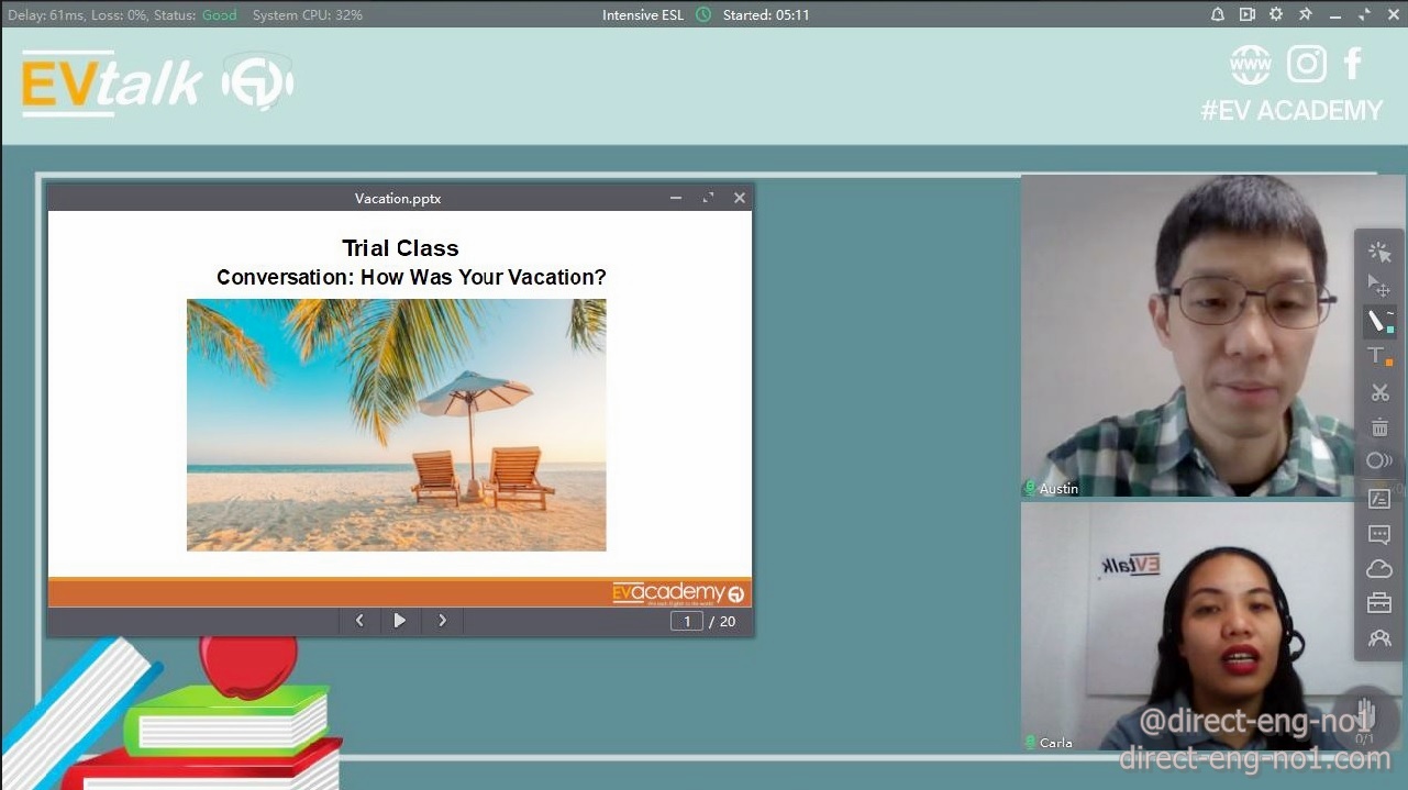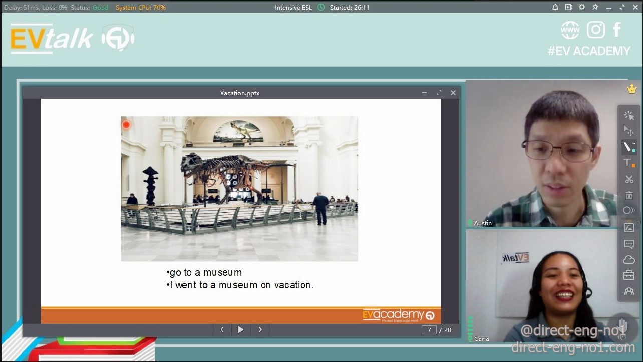 2020년 11월에 다이렉트유학원이 직접 체험한 화상영어 EV talk 후기입니다.