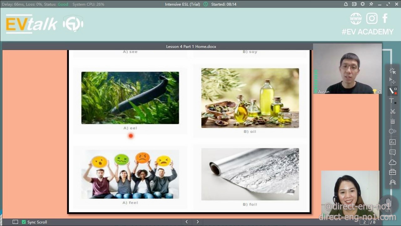 2020년 11월에 다이렉트유학원이 직접 체험한 화상영어 EV talk 후기입니다.