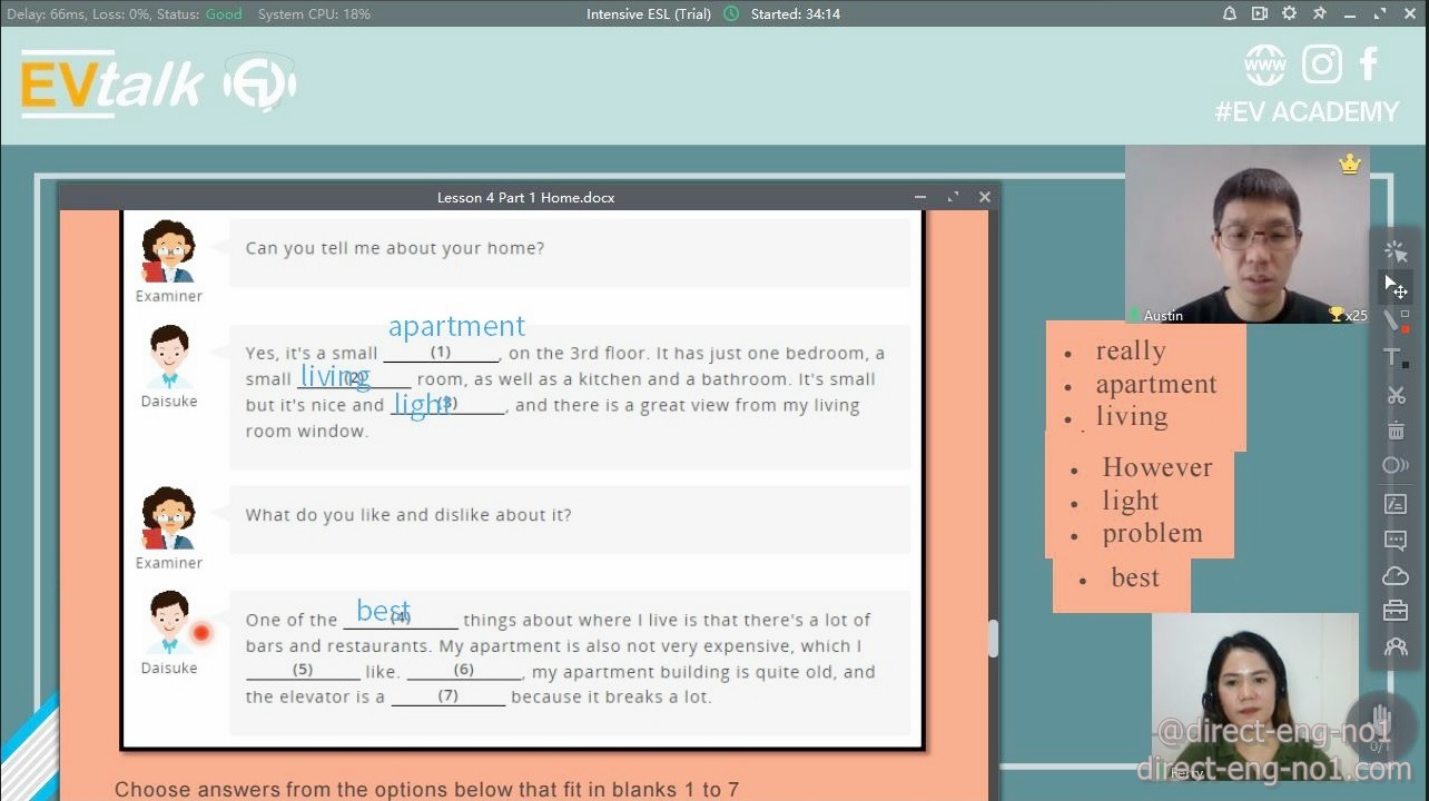 2020년 11월에 다이렉트유학원이 직접 체험한 화상영어 EV talk 후기입니다.