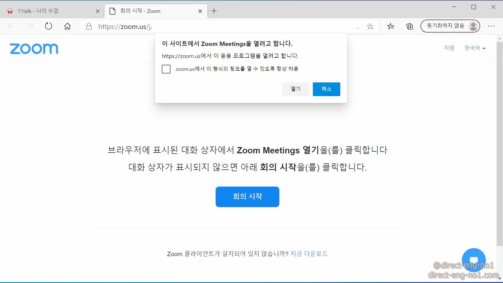 30분 간의 땡땡이를 생각을 하고 11talk 웹사이트에 접속합니다. 11talk 웹사이트에서는 수업일정 및 공지사항을 확인할 수 있습니다.