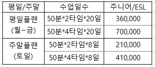 하루 50분 수업 * 2/3/4타임 * 20일간 진행하는 방학특강입니다.