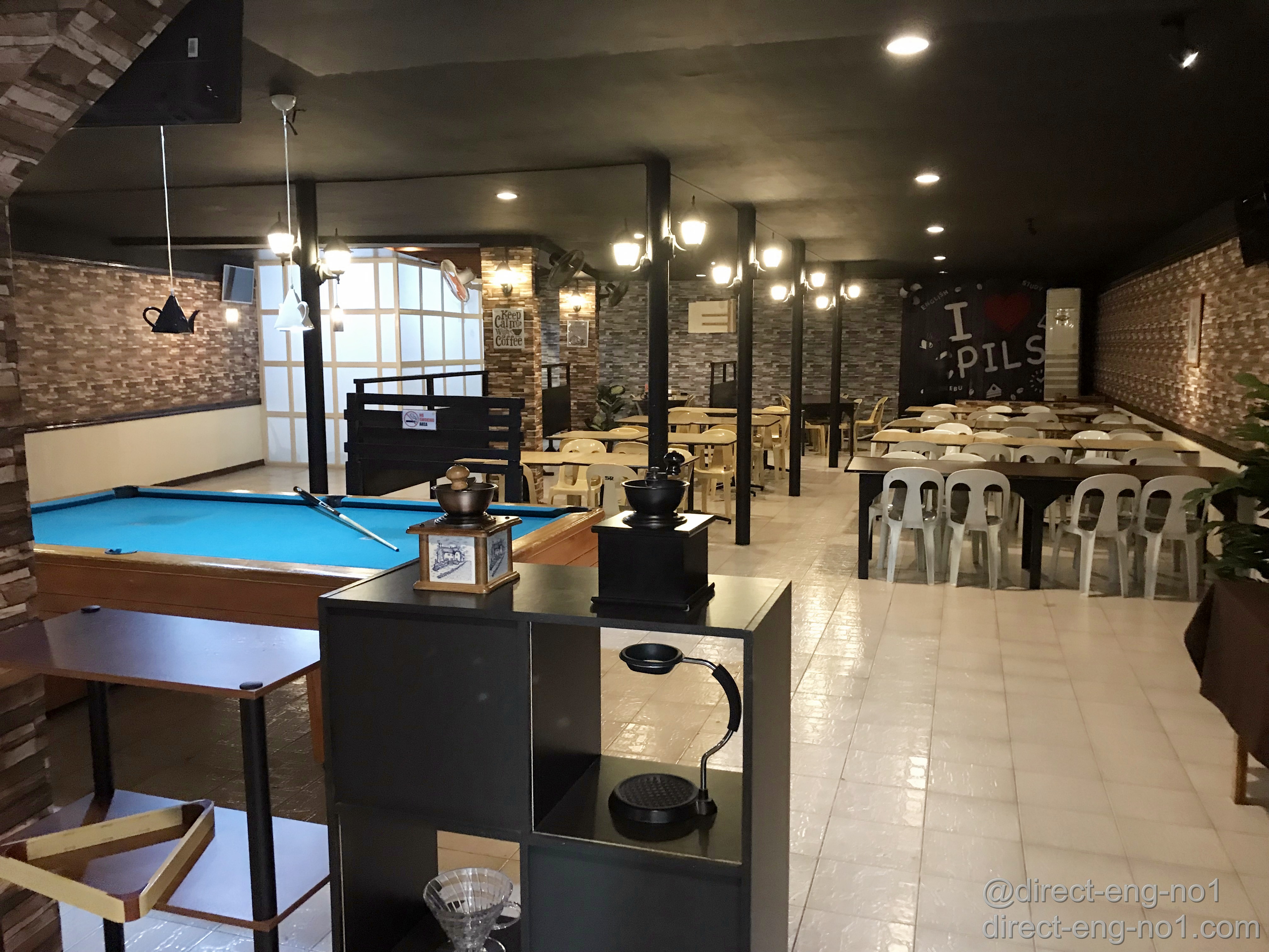 이 곳은 어학원 내의 카페입니다. 음료와 간단한 놀이시설이 있으며, 매점과는 다르게 외부에서 운영하기 때문에 현금 결제해야 합니다.
