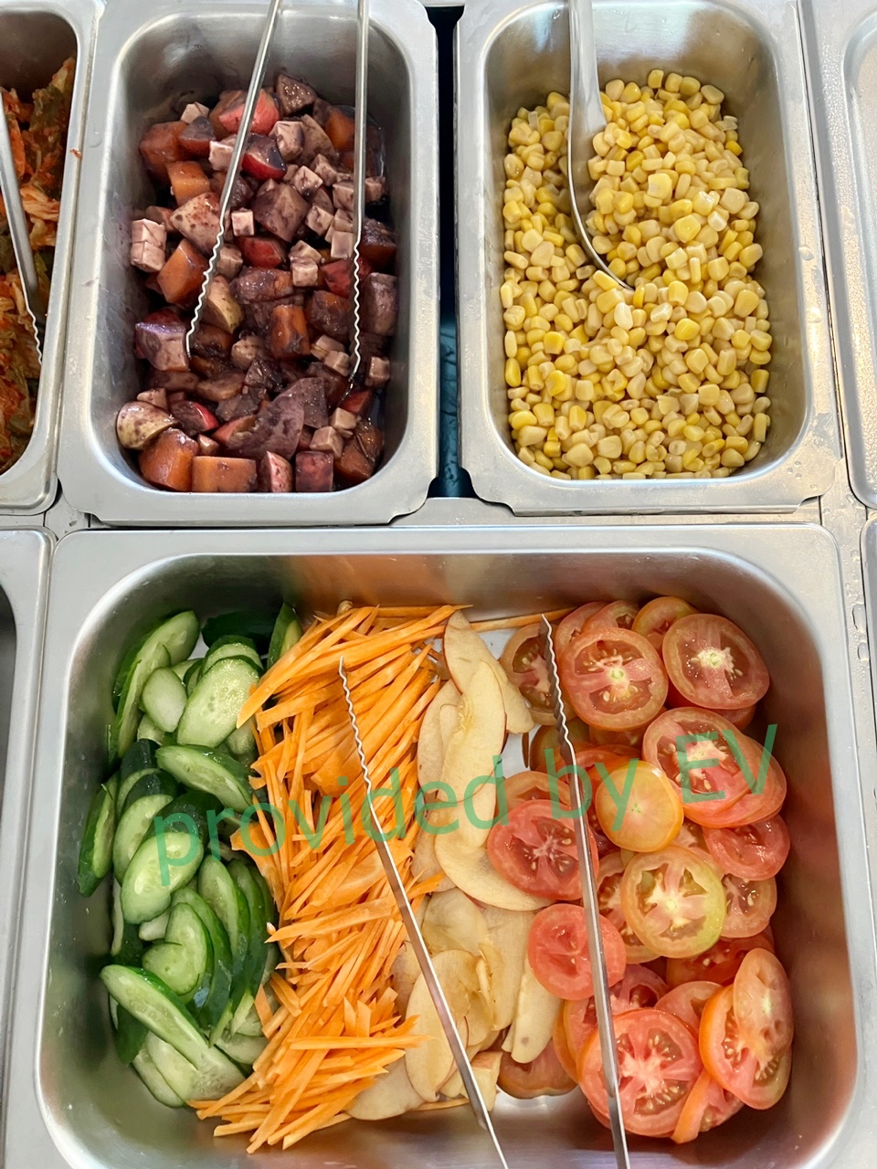 EV아카데미는 전문 케이터링 업체와 계약하여 하루 세끼의 식사를 뷔페식으로 제공합니다.