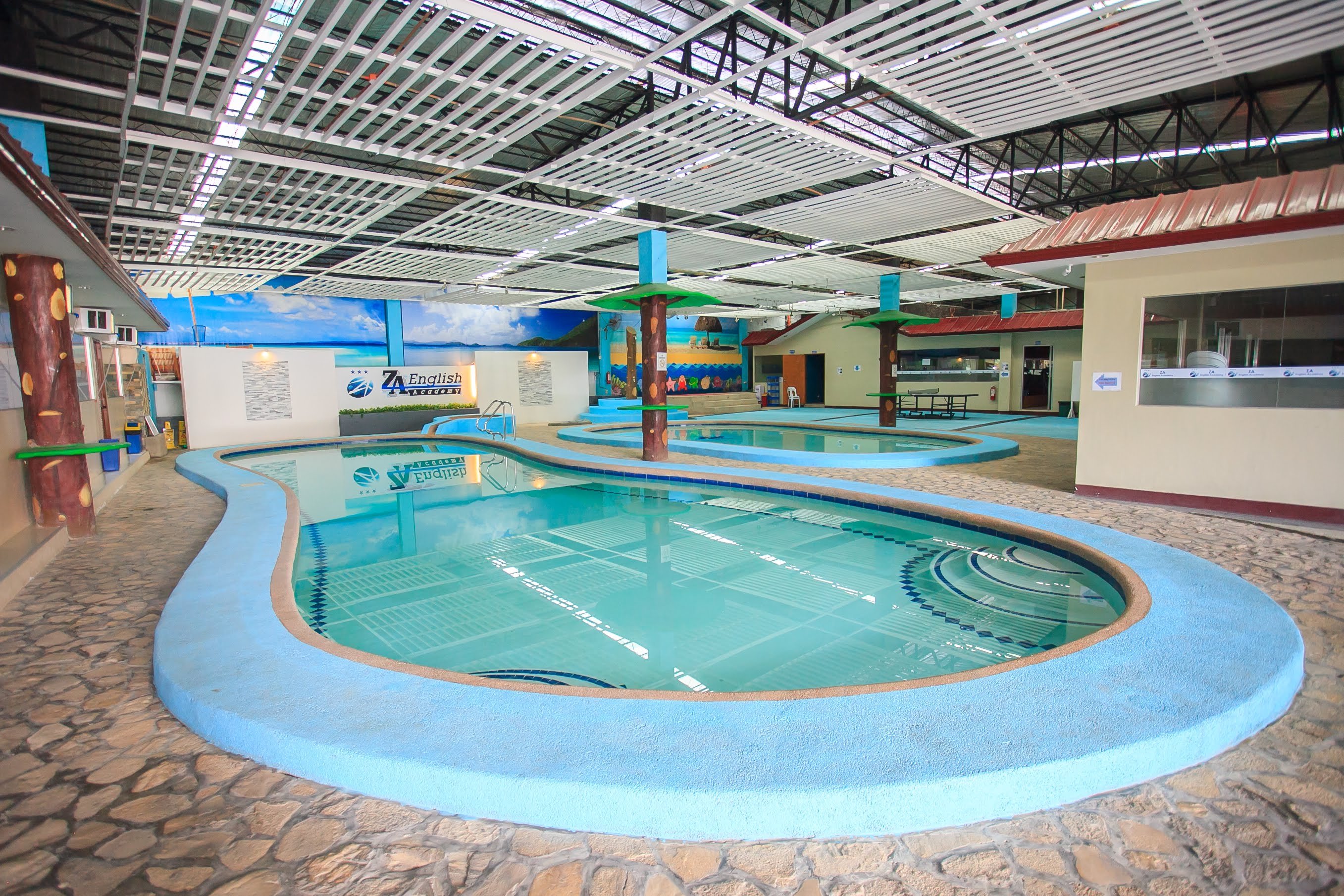 가성비 어학원이라고 하지만 수영장도 있습니다.  ZA 아카데미를 리모델링해서 아직 ZA시절의 흔적이 남아있습니다.