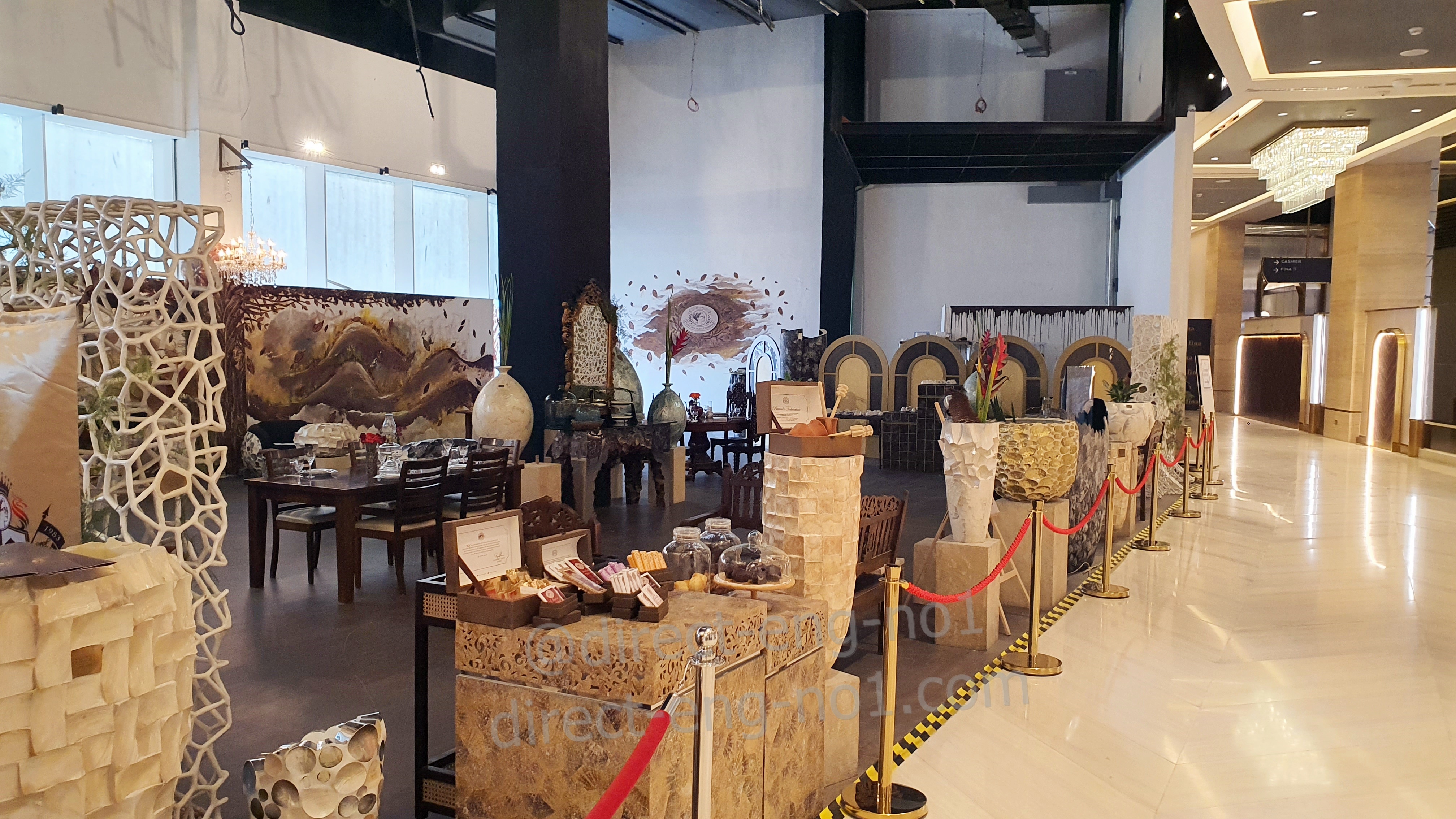 리조트 로비인 듯 보이는데 천장의 구조물이 특이합니다. 반지를 연상시키는 구조물입니다.