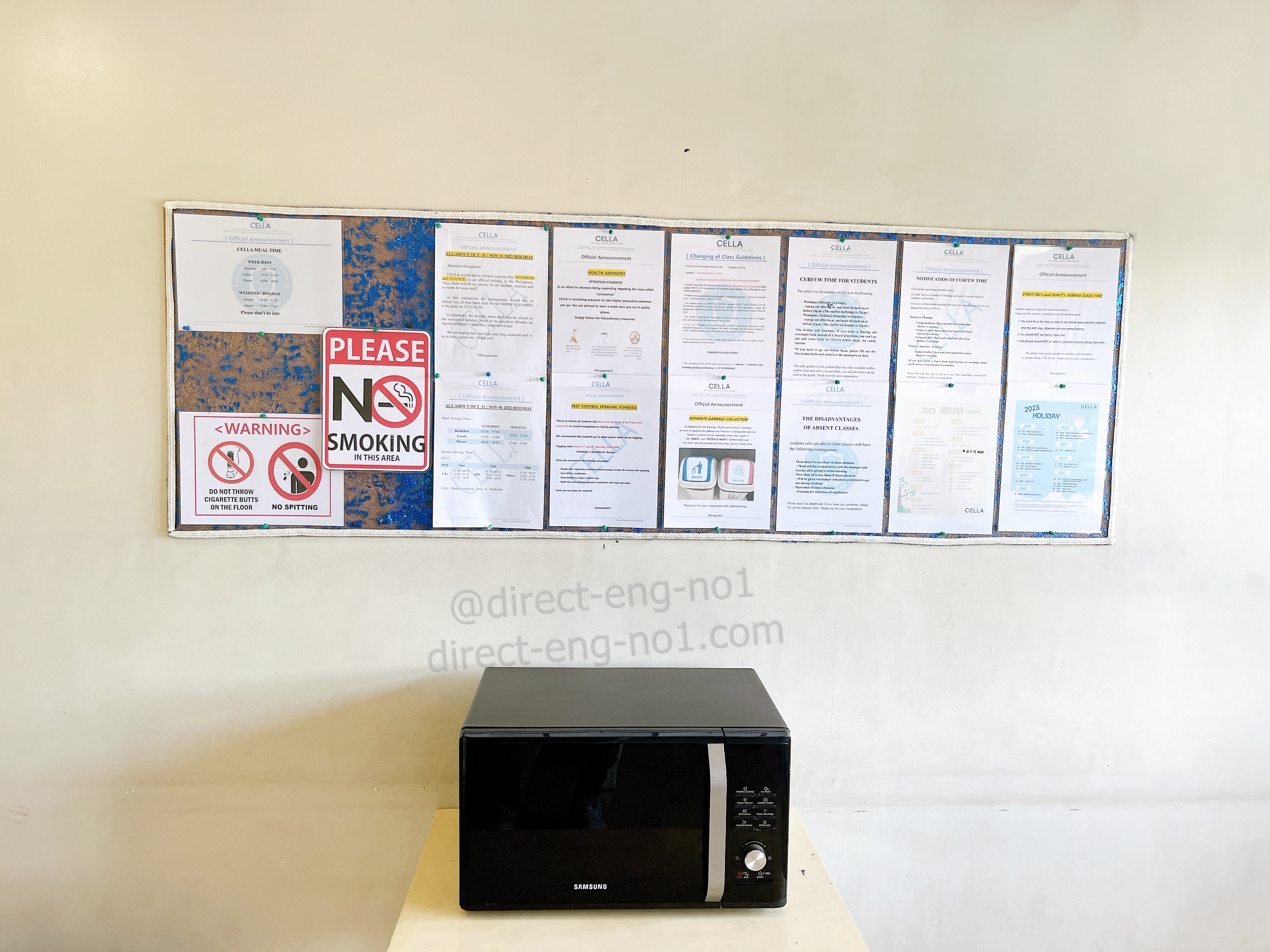 층마다 전자레인지가 있고, 벽에는 각종 안내문이 붙어있습니다.